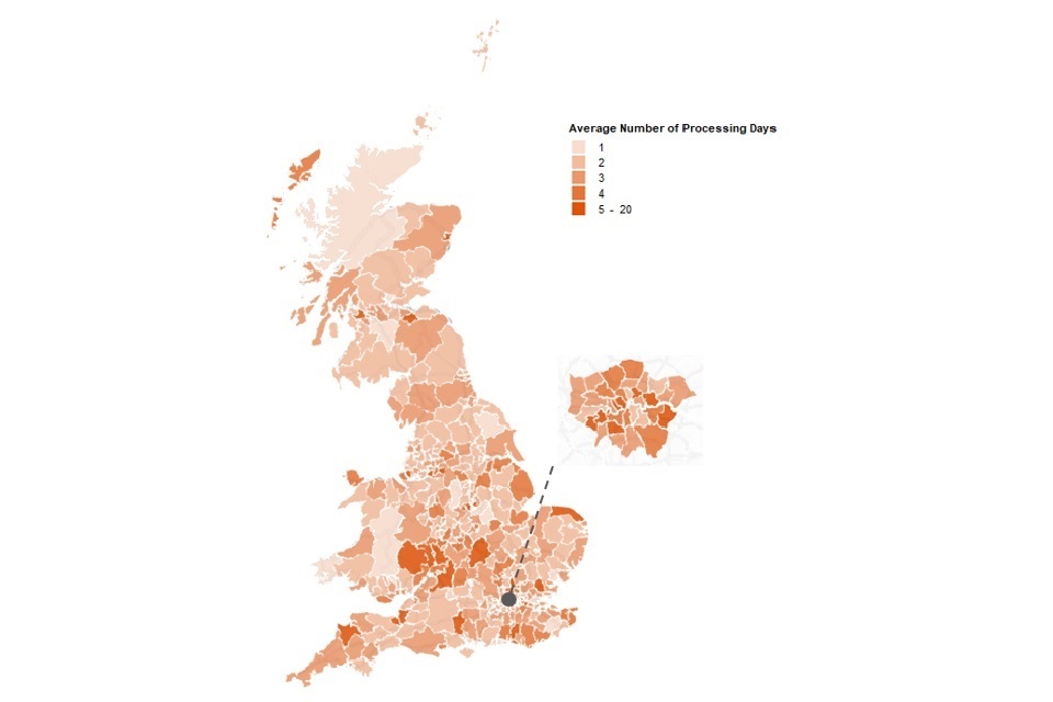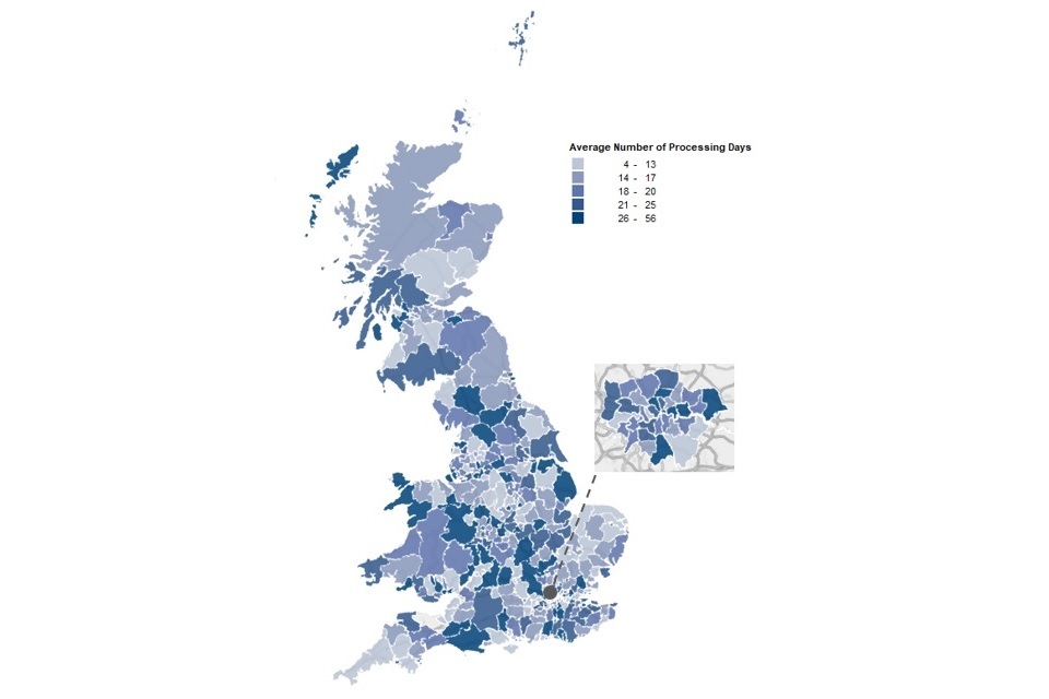 Details for the average speed of processing for individual LAs can be seen in table 1 of the accompanying data tables.