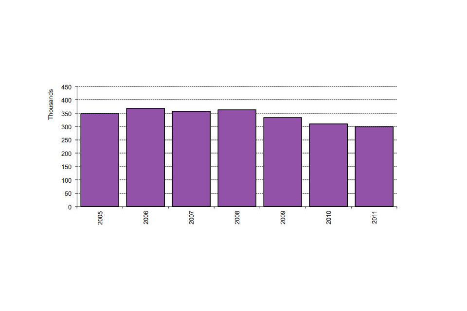 Children are those recorded as being under 18 years of age. All data for 2011 and 2012 are provisional.