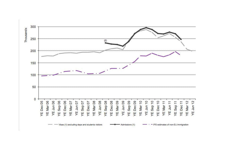 Source: Home Office, immigration statistics April – June 2012, Before entry table be.04.q and Admissions table ad.02.q; Office for National Statistics.