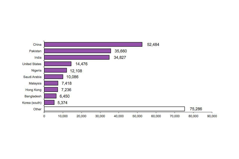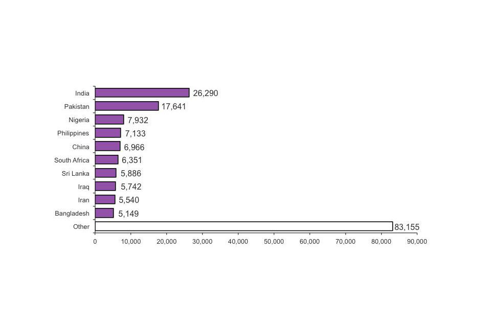 The nationality breakdown for those granted extensions is in some respects different to the top ten nationalities rankings for admissions and for visas, notably with Nigeria, Turkey, Bangladesh, and Sri Lanka accounting for the third, fifth, 8h and ninth highest number of extensions for work.