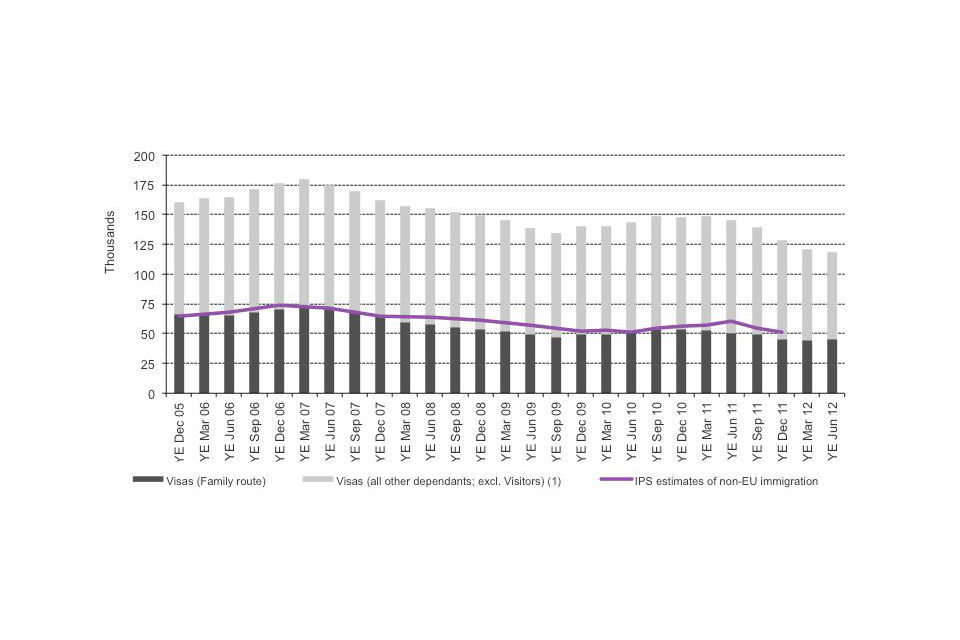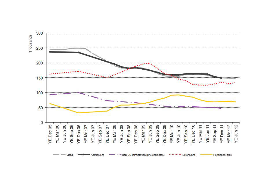 Source: Home Office, immigration statistics April - June 2012, Before entry table be.04.q, Admissions table ad.02.q, Extensions table ex.01.q and Settlement table se.02.q; Office for National Statistics.