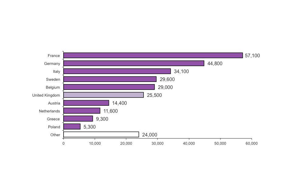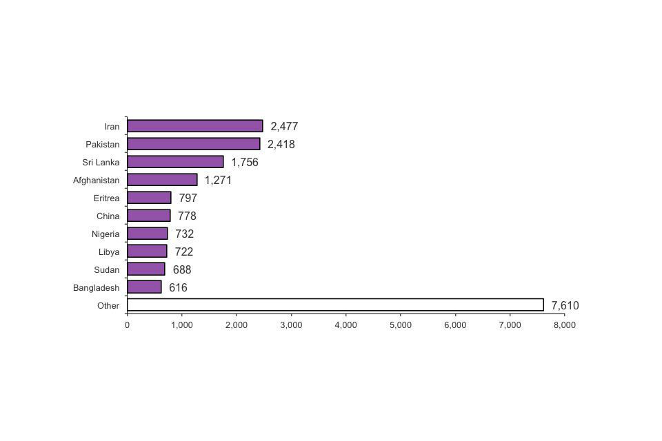 Analysing the data further (table ex.02.w) the main explanation is that most of these Nigerian, Bangladeshi and Sri Lankan nationals were granted extensions as highly skilled individuals under the (Tier 1) Post study route. Since they originally entered via a study route, they are not prominent in the nationality rankings for work-related admissions and visas. Turkish nationals also have special provision to switch into the ‘work route’ under the European Community Association Agreement with Turkey.