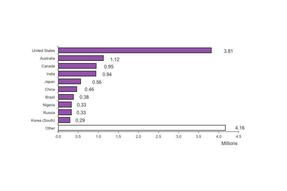 Some of the differences in the ranking between visas and admissions data may be due to timing differences e.g. some visas granted in 2011 may be used in 2012. Additionally some individuals admitted within the creative and sporting category (part of Tier 5) do not need a visa, and this largely explains the higher number of admissions (estimated 26,000) seen for United States nationals.
