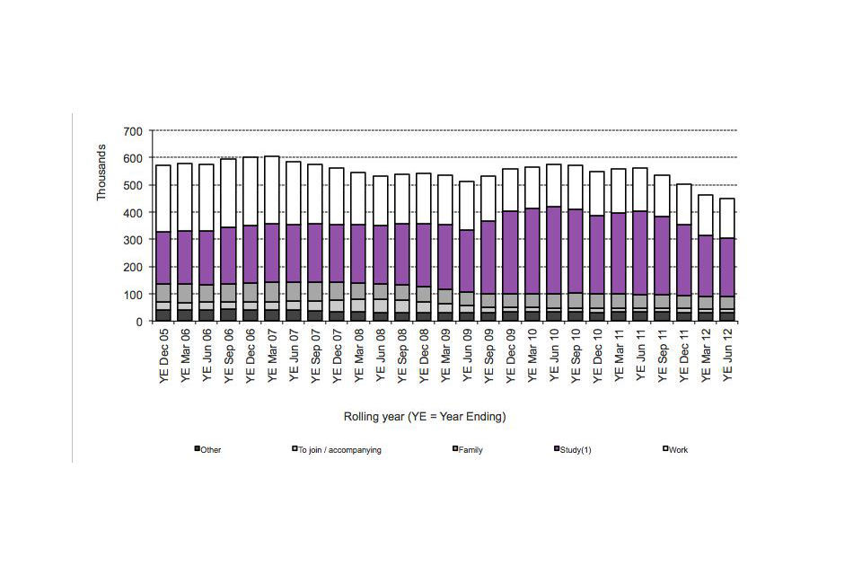Source: Home Office, immigration statistics April - June 2012, Work table ex.02.w.