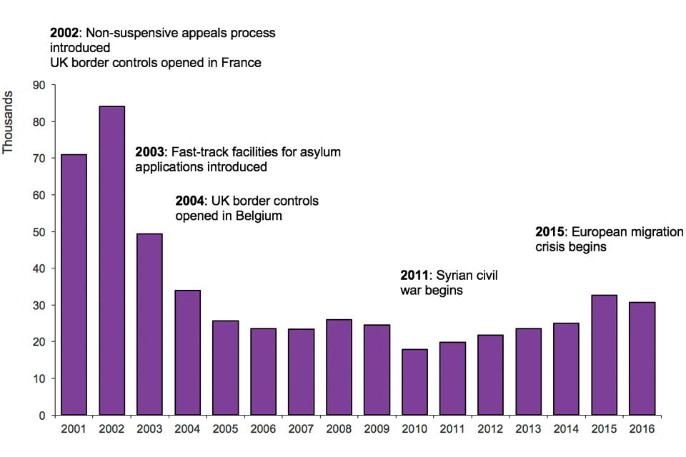 Source: Home Office, Immigration Statistics April to June 2017, Asylum table as 01 (Asylum volume 1).