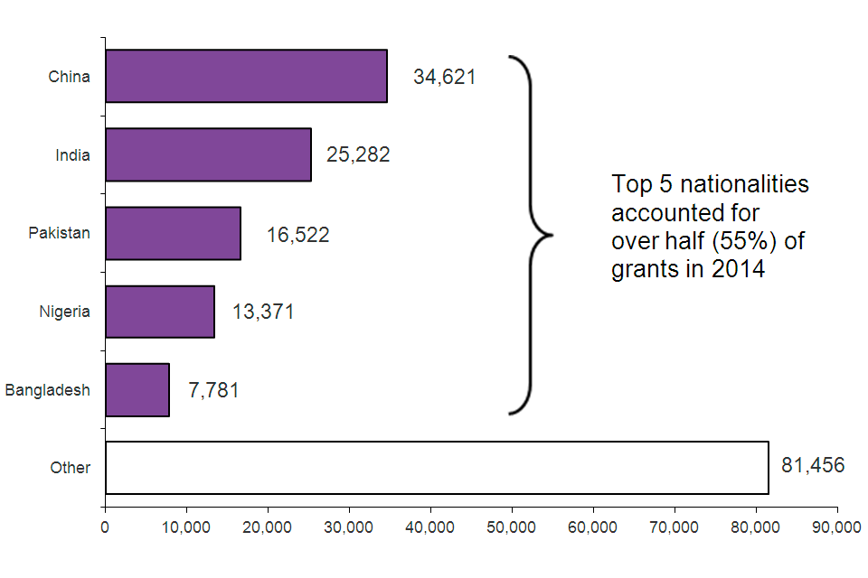 Top 5 nationalities granted an extension to stay, 2014