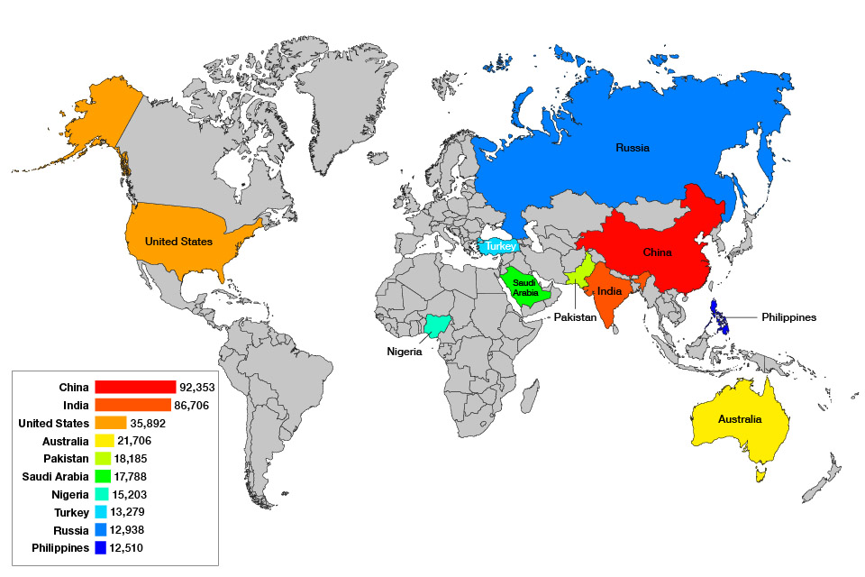 The map below illustrates the top 10 nationalities granted visas, excluding visitor and transit visas, in the year ending September 2015, which account for 61% of the total 535,700. More detailed commentary on visa statistics by reason and nationality is included in the Work topic, Study topic, and Family topic.