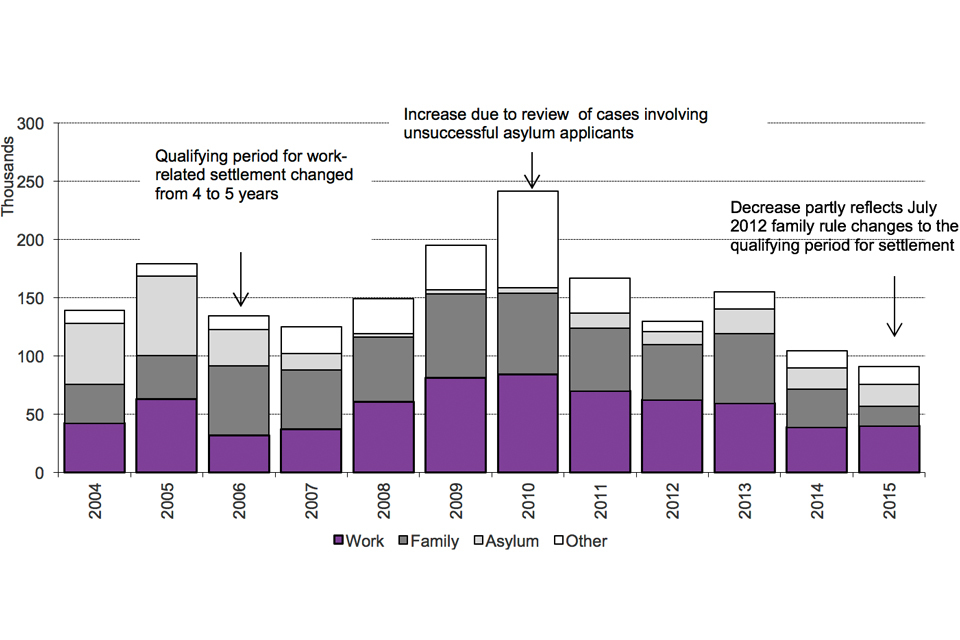 Source: Home Office, Immigration Statistics July to September 2016, Settlement table se 02.