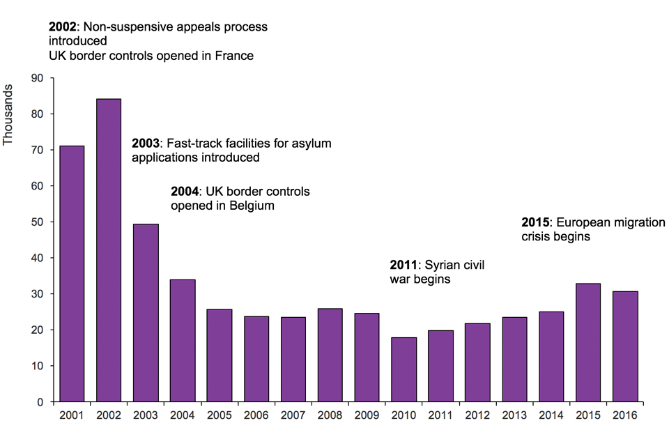 Source: Home Office, Immigration Statistics July to September 2017, Asylum table as 01 q (Asylum volume 1).