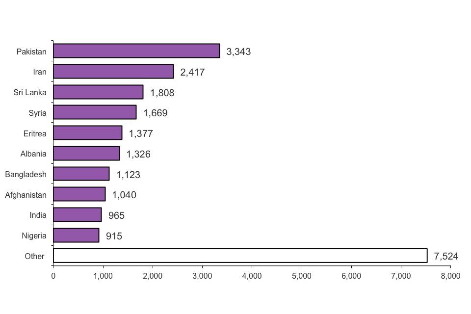 EEA nationals are not subject to immigration control so are not included in these figures. When a country joins the EU its nationals are no longer included in these figures e.g. Bulgarian and Romanian nationals are not included from 2007 onwards.