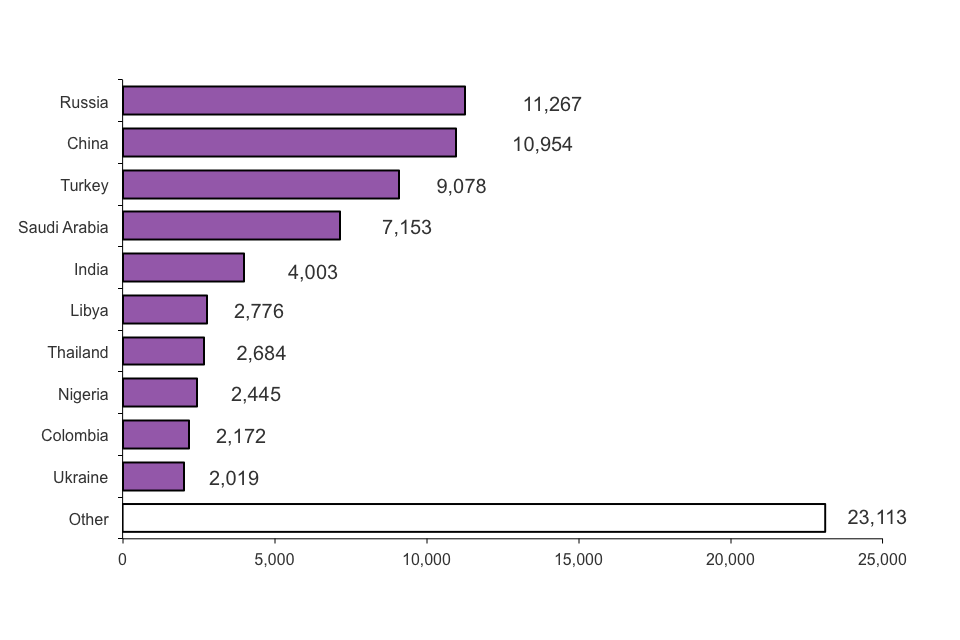 The 7% increase in work-related visas was largely accounted for by higher numbers for skilled workers (Tier 2, +11,927 or +18%), and for Youth mobility and temporary workers (Tier 5, +2,779 or +7%). The increase in skilled workers included 4,777 more visas in the short term Intra Company Transfer category. This was partially offset by fewer visas issued for high value workers (Tier 1) which fell by 6,389 (-35%). The fall for high value workers (Tier 1) followed the closure of the Tier 1 General and Tier 1 Post-Study categories to new applicants.