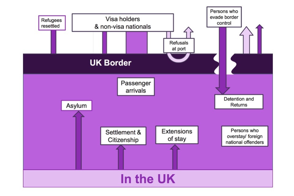 The Immigration Statistics release provides information on the Home Office’s operation of immigration control and related processes, including the work of UK Border Force, UK Visas and Immigration, and Immigration Enforcement. Official statistics on long-term immigration, emigration and net migration are published separately by the Office for National Statistics (ONS).