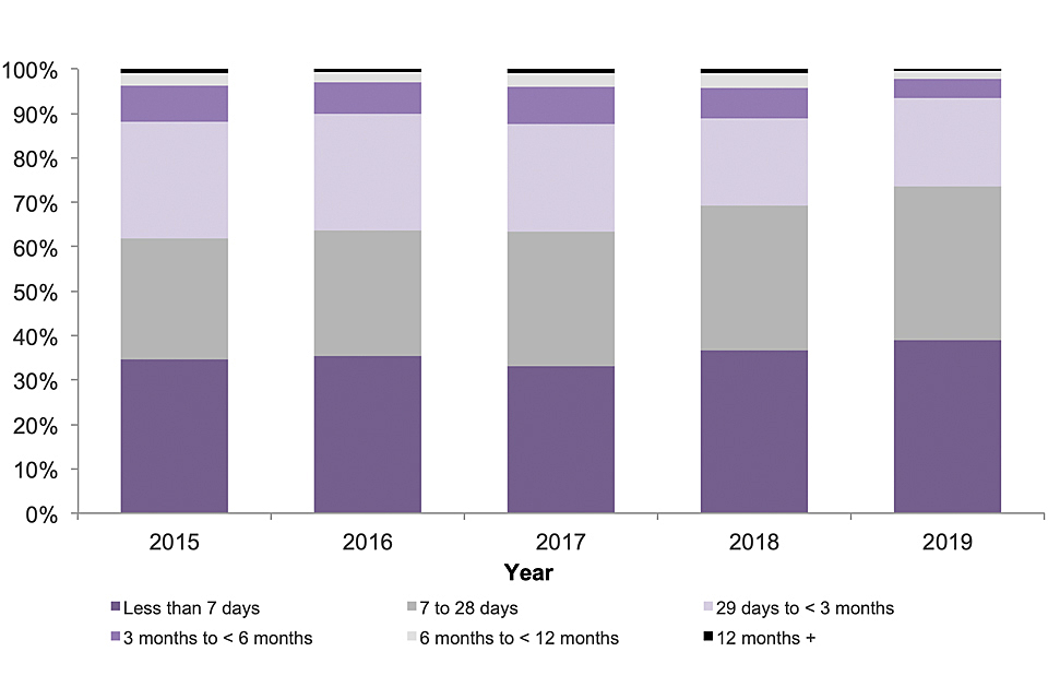 Figure 2: People leaving immigration detention, by length of detention1, 2015 to 2019