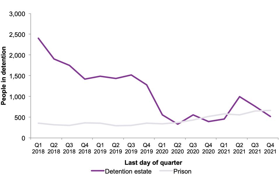 Data on immigration detention relates to 2021 and all comparisons are with 2020, unless indicated otherwise.