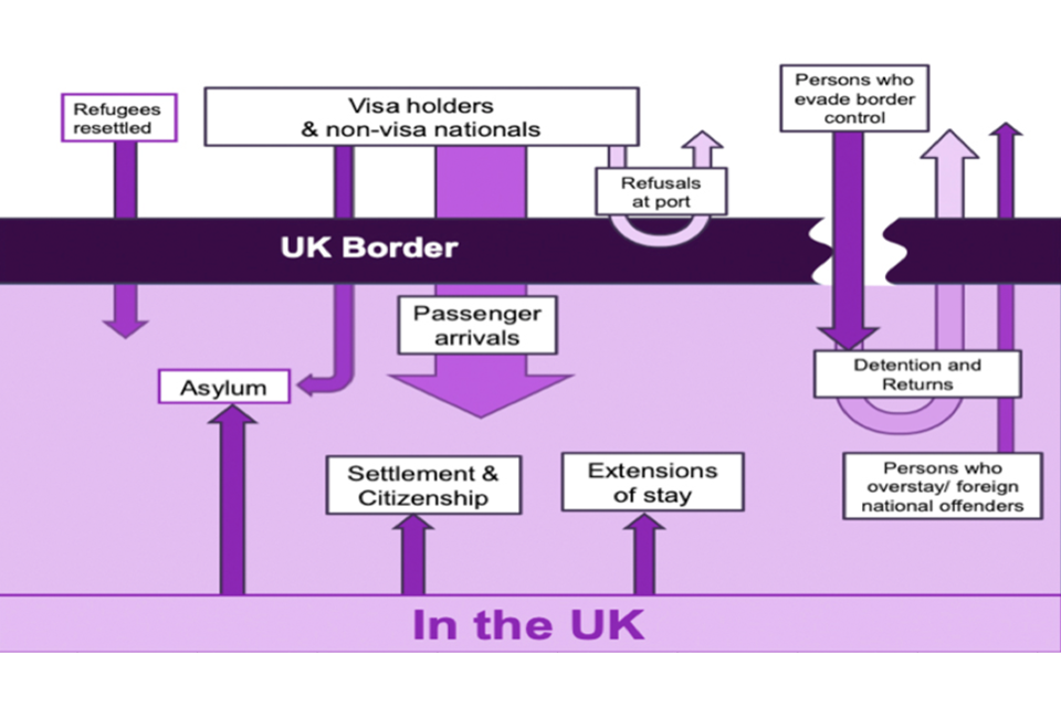 - A person can cross the UK Border legally either with a visa or as a non-visa national, as regular passenger arrivals, along with those that are seeking asylum and refugees through resettlement schemes. Individuals arriving at the border may be refused entry and returned to where they travelled from. Whilst in the UK, individuals may apply: for asylum; to extend their stay; to settle permanently; or for citizenship. Individuals also enter illegally by evading border control. Where detected, these individuals would be detained and returned. Individuals can also be removed from the UK for breaching their conditions of entry (e.g. persons who overstay) and foreign national offenders.