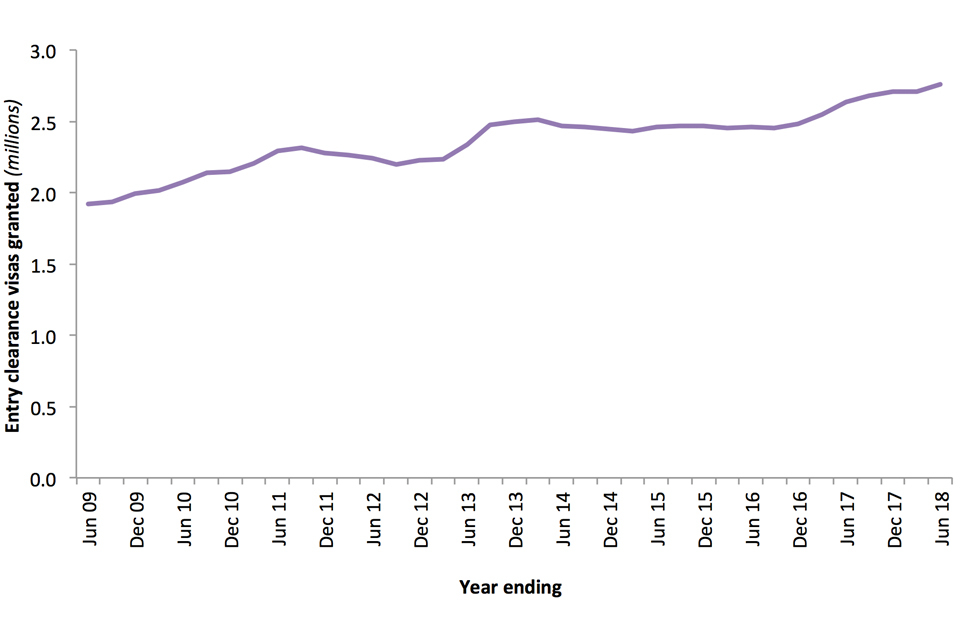 Entry clearance visas granted, year ending June 2009 to the year ending June 2018