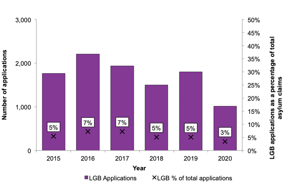All statistics published in this section relate to the number of asylum claims made where sexual orientation formed part of the basis of the claim. The data cover claims with a lesbian, gay, or bisexual (LGB) element, but do not cover other forms of sexual or gender identity.