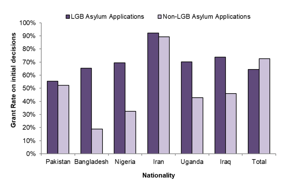 Figure 2 shows that the asylum grant rates for LGB cases vary for different nationalities.