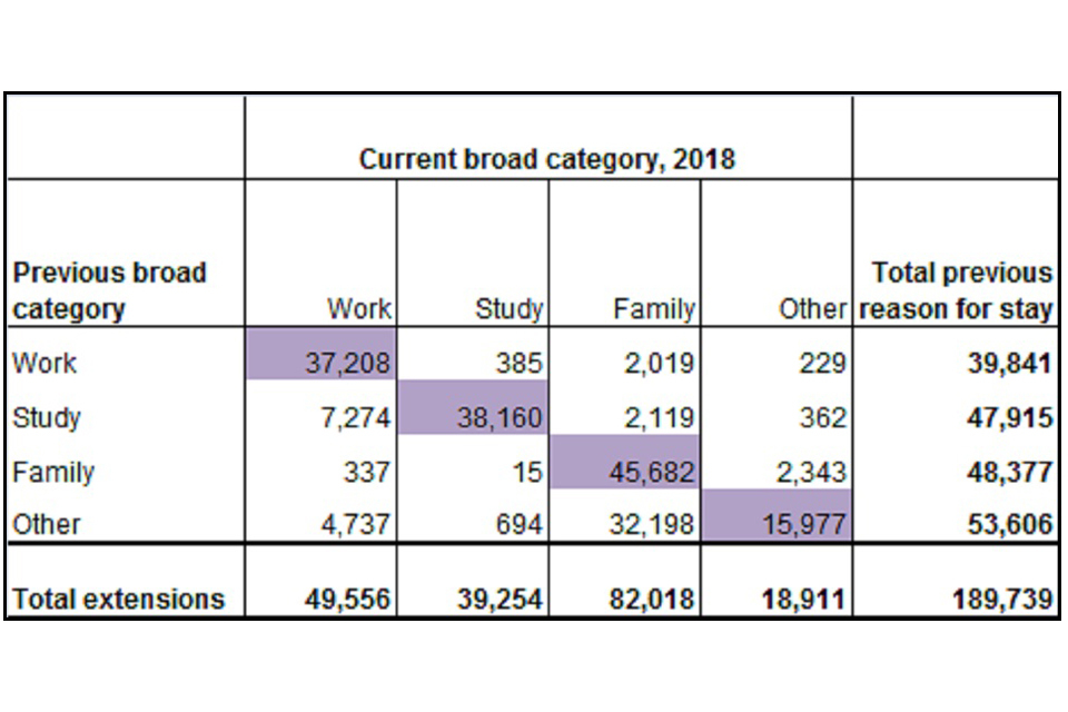 There were 189,739 main applicants granted an extension to their stay in 2018 (the latest available data by previous reason for stay). Of these: