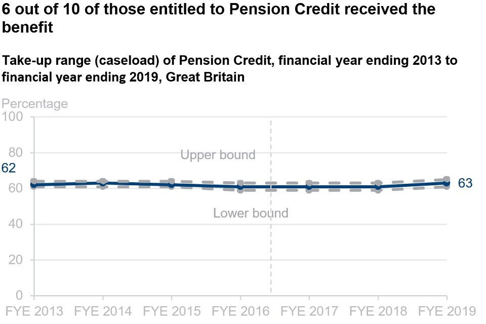 • caseload – 6 out of 10 of those entitled to Pension Credit claimed the benefit