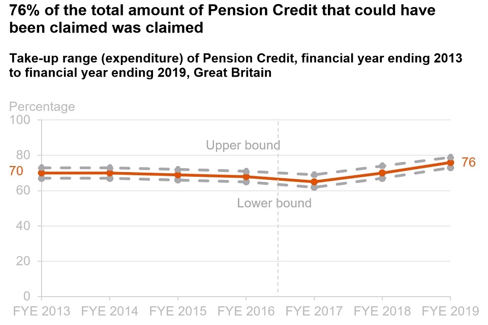 • expenditure – 76% of the total amount of Pension Credit that could have been claimed was claimed