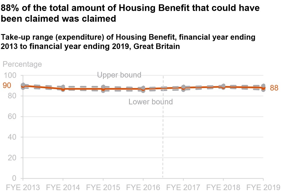 • expenditure – up to £3.4 billion of available Housing Benefit went unclaimed: