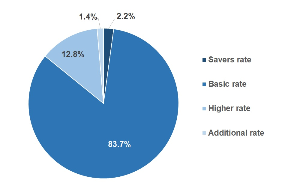 Estimates for 2021 to 2022 are projections based on the 2018 to 2019 Survey of Personal Incomes and the Office for Budget Responsibility’s March 2020 Economic and Fiscal Outlook. Basic rate includes savers rate Income Tax payers and both Scottish starter and intermediate rate Income Tax payers.