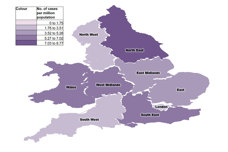 The region that had the highest number of referrals adopted as a Channel case per million population was the North East (15.1), followed by the West Midlands (14.4) and the South East (13.7). The West Midlands has been within the top three regions that received the highest number of Channel cases per million population in each of the previous three years.