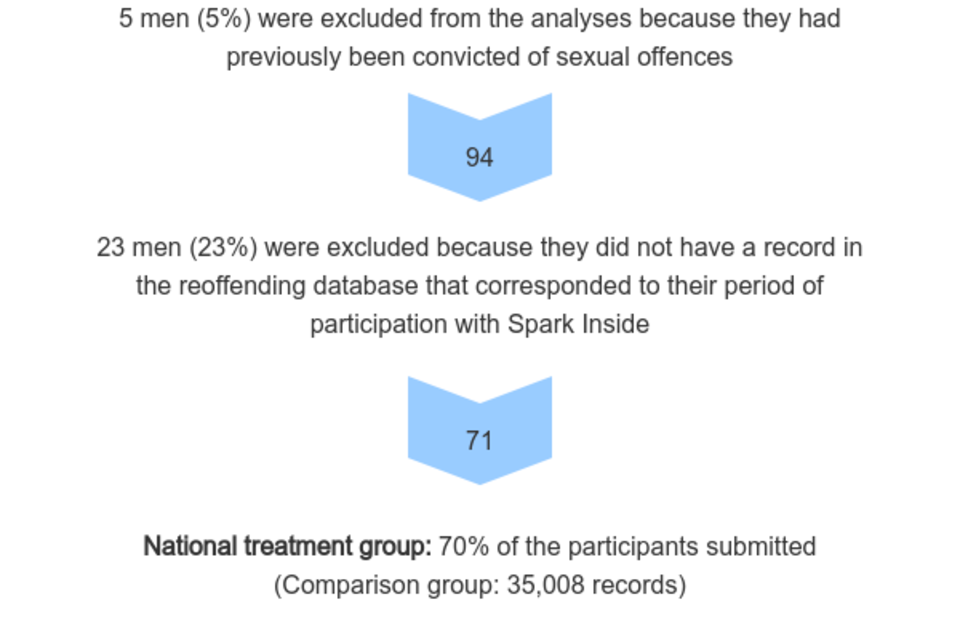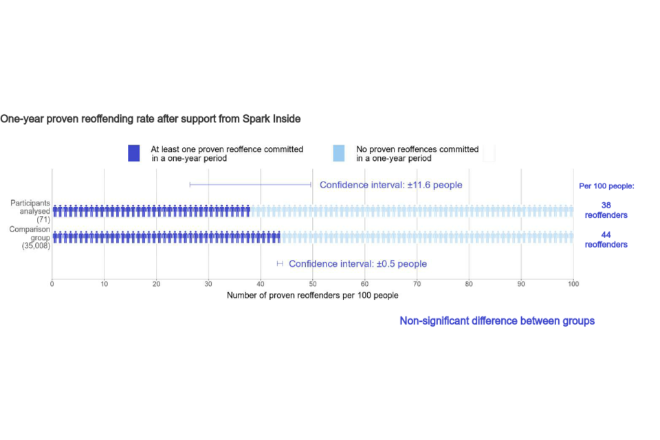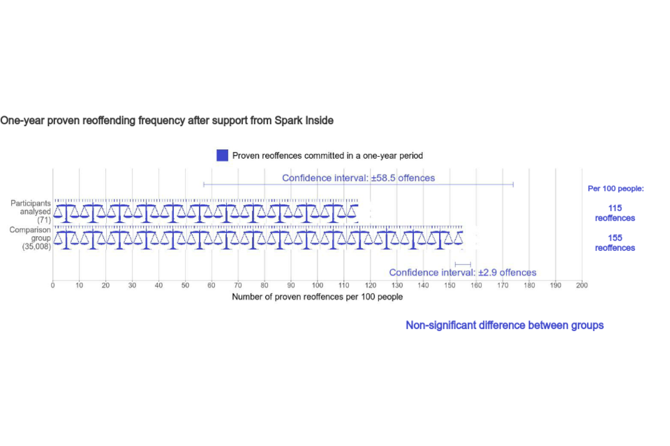 “This analysis does not provide clear evidence on whether support from Spark Inside increases or decreases the number of proven reoffences during a one-year period. There may be a number of reasons for this and it is possible that an analysis of more participants would provide such evidence.”