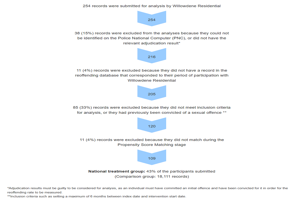 - National analysis: treatment group matched to offenders across England and Wales using demographics, criminal history and individual risks and needs.