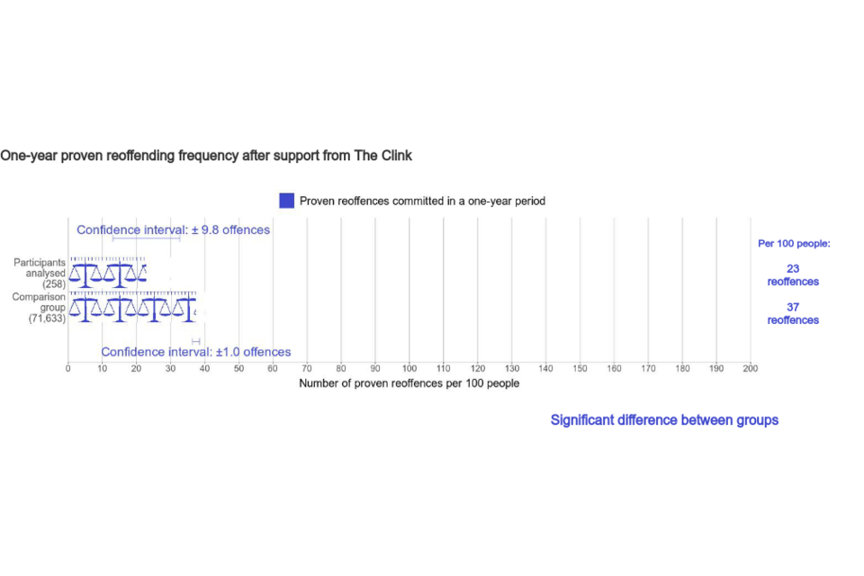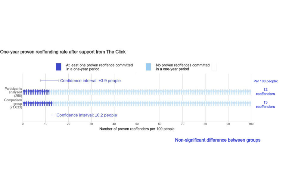 “This analysis does not provide clear evidence on whether support from The Clink increases or decreases the number of participants who commit a proven reoffence in a one-year period. There may be a number of reasons for this and it is possible that an analysis of more participants would provide such evidence.”