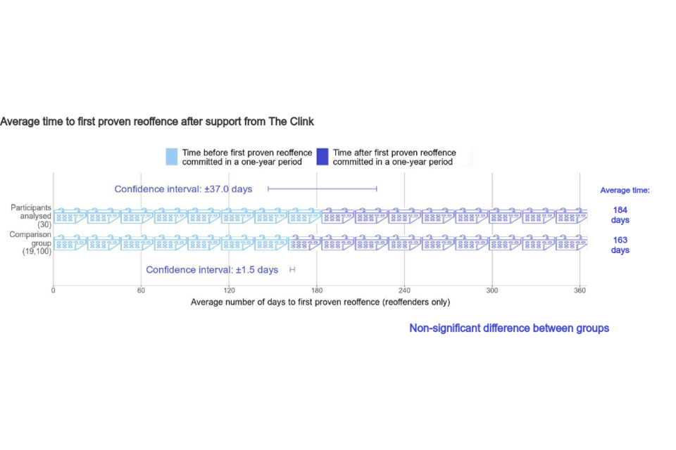 “This analysis does not provide clear evidence on whether support from The Clink shortens or lengthens the average time to first proven reoffence. There may be a number of reasons for this and it is possible that an analysis of more participants would provide such evidence.”