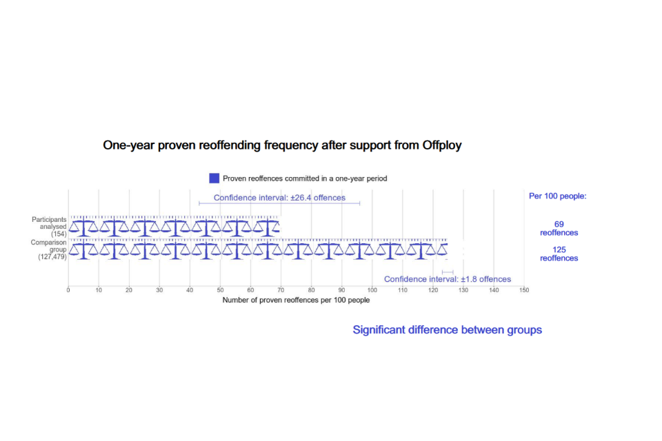| “This analysis provides evidence that support from Offploy decreases the number of proven reoffences committed during a one-year period by its participants.” | |