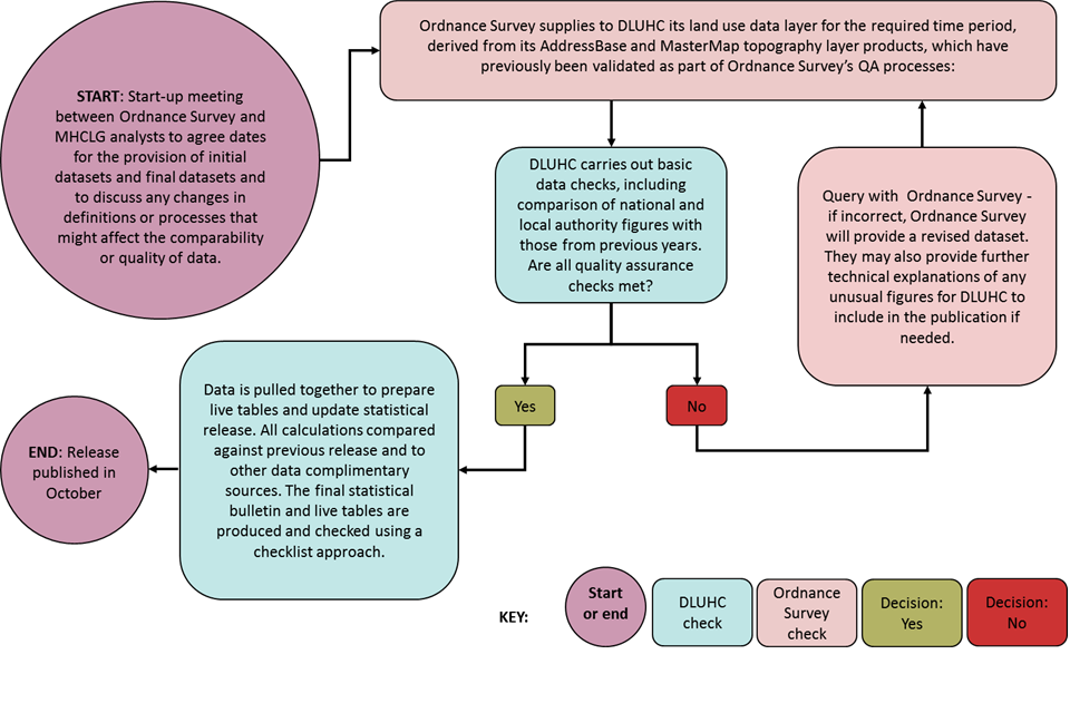Overall, the Land Use in England and Land Use Change statistics have both been assessed as A1: Low Risk. A full outline of the statistical production process and quality assurance carried out is provided in the flow chart in Figure 1.