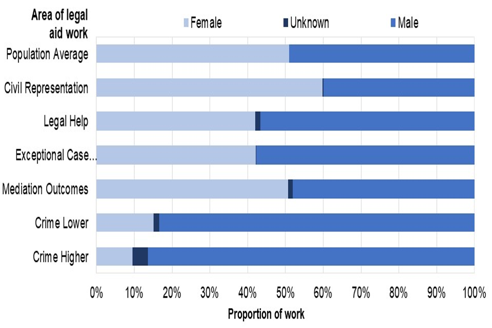 Generally, the age profile of legal aid clients is much less evenly spread than the population average, with a higher proportion of working age clients and a smaller proportion of over 55s. A much greater proportion of criminal legal aid clients are from young adult age groups (aged 18-24 and 25-34) than in the general population.