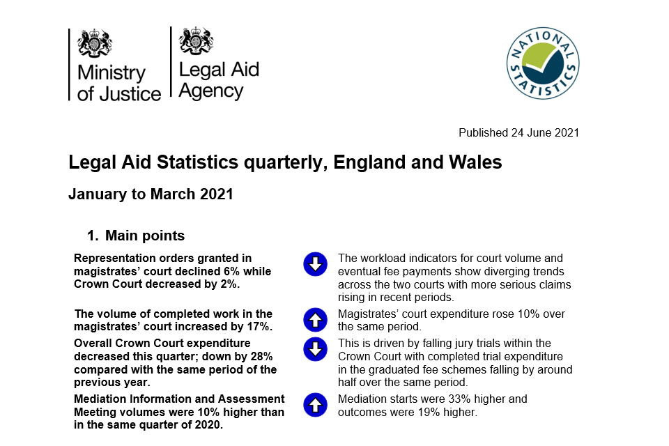 Legal aid statistics England and Wales bulletin Jan to Mar 2021