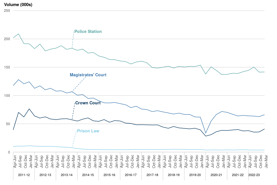 | Police Station Advice | 141,601(0%⬌) | £32.9m(11%⬈) |