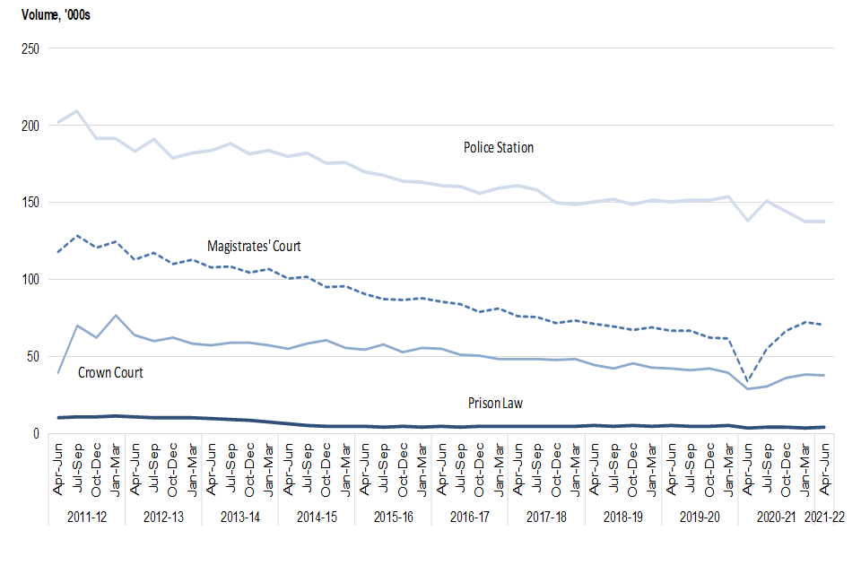 It was expected that criminal and civil legal aid volumes would return to, and even temporarily exceed, historic trend levels and more recent falls could be due to this return to normal levels or impact from further lockdowns.