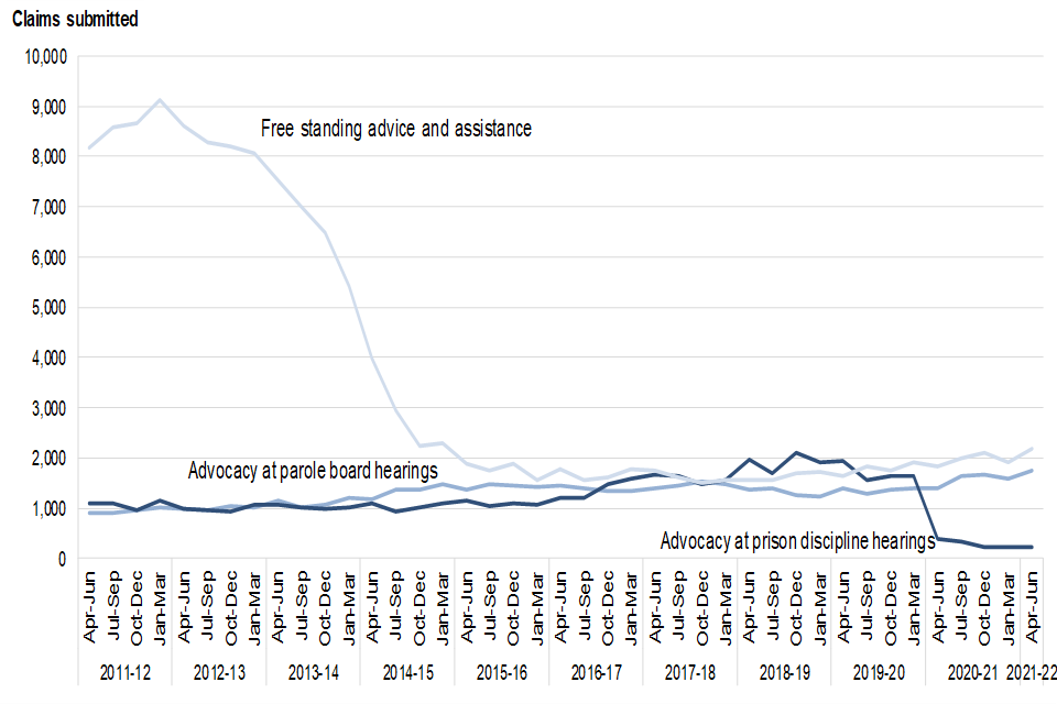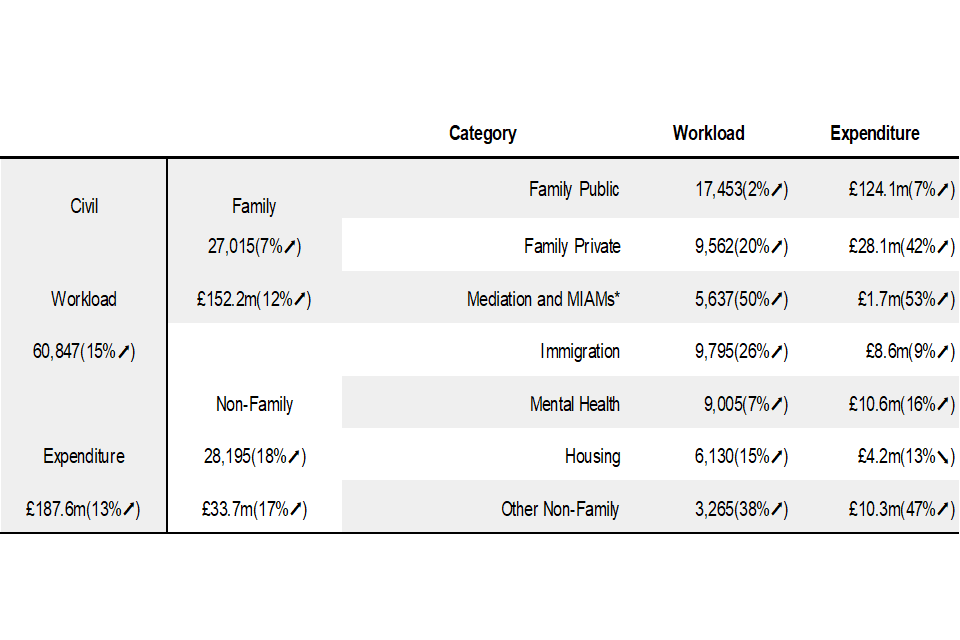 Overall, the recovery of legal help starts, the volumes of completed claims and expenditure has been slow following the impact of COVID-19. Although positive, legal help workload and expenditure has not returned to the levels seen pre pandemic. In the current quarter, new matter starts remain lower (16%) than the same period of 2019. The volume of completed claims have decreased by 11% and expenditure also decreased by 14% over the same period.