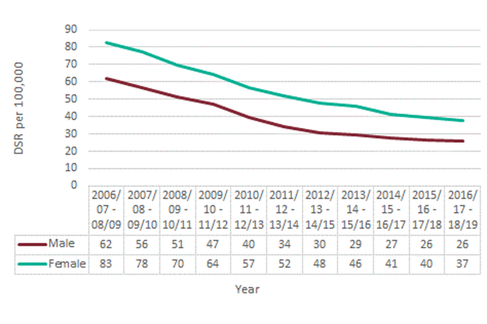 In general, the Broad measure gives an indication of the full impact of alcohol on hospital admissions and the burden placed on the NHS. The Narrow measure estimates the number of hospital admissions which are primarily due to alcohol consumption and provides the best indication of trends in alcohol-related hospital admissions.