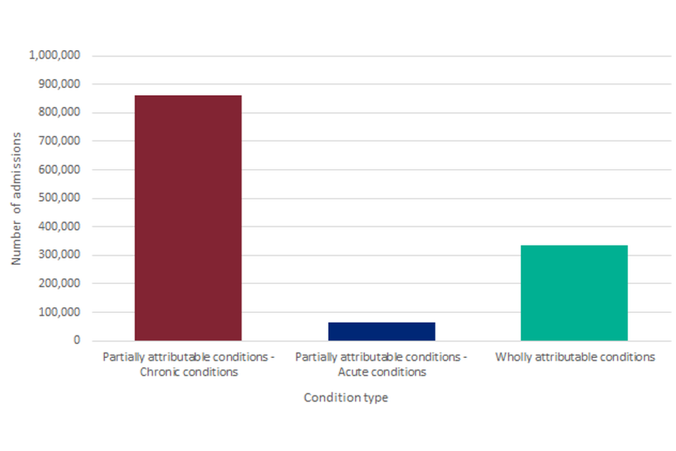 In 2018 to 2019, chronic conditions which are partially but not wholly caused by alcohol accounted for 68% of all alcohol-related hospital admissions on the Broad definition.