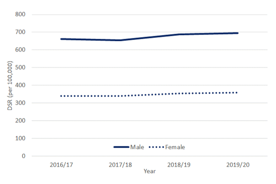 Figure 5: Alcohol-related admissions (Narrow) by sex, England