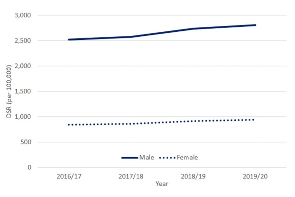 Figure 3: Alcohol-related admissions (Broad) by sex, England