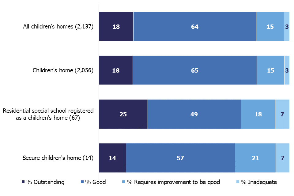 The proportion of all children’s homes judged good or outstanding remains the same as last year.