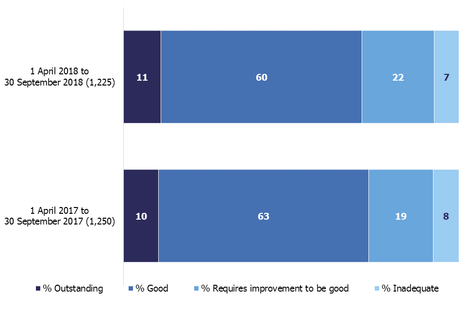Of the 1,196 providers that had a full inspection in the period (1 April to 30 September 2018), 1,115 also had a full inspection in the previous year (1 April 2017 to 31 March 2018).