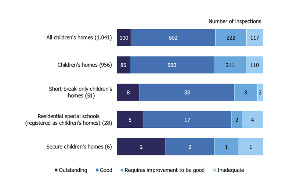 Out of 2,776 active children’s homes as at 31 August 2021, 2,381 (86%) had an inspection judgement. The percentage is slightly higher than at the last reporting period of 31 March 2021, when 82% (2,217) of active children’s homes of all types had an inspection judgement.