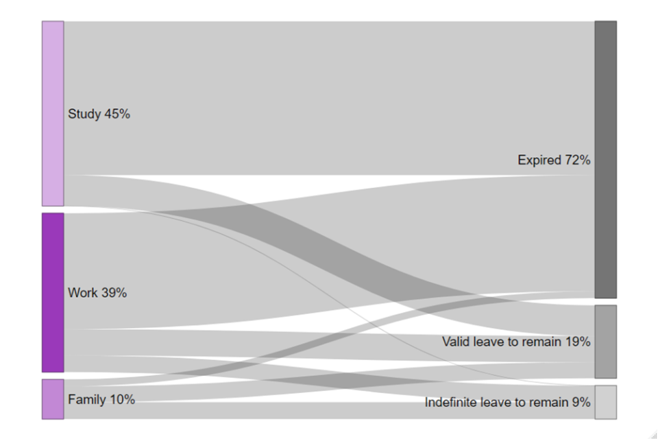 This release explores changes in non-European Economic Area (non-EEA) migrants’ visa and leave status as they journey through the UK’s immigration system.