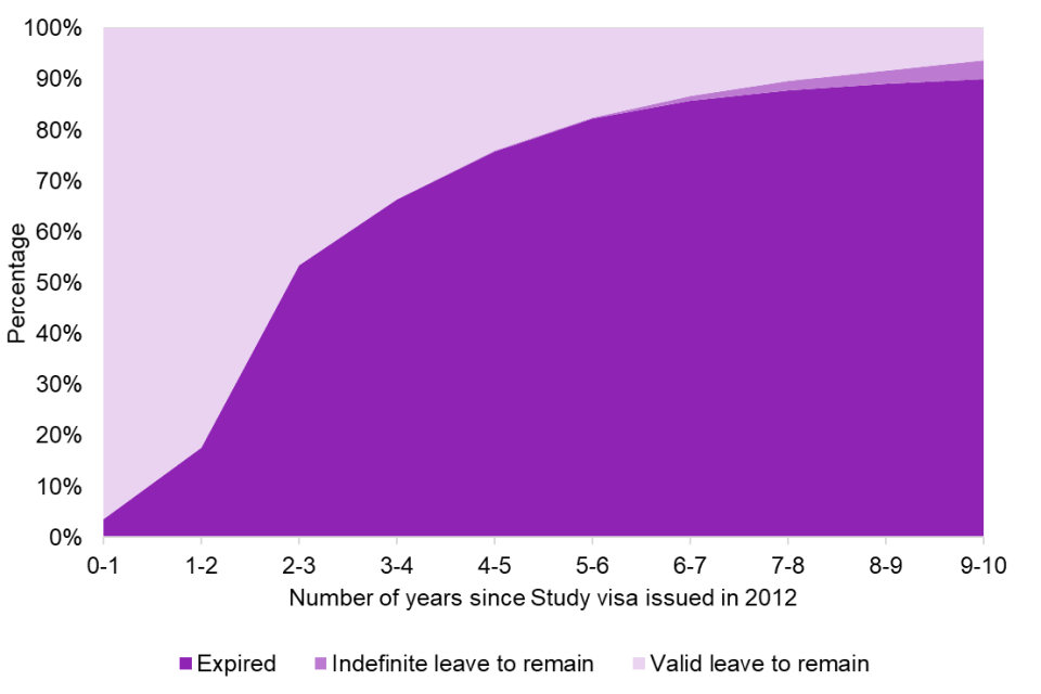 The report looks at the leave status of migrants each year from the point at which they were initially granted leave to enter the UK, any subsequent grants of extensions of stay within the UK, to settlement, citizenship, or leave expiry.