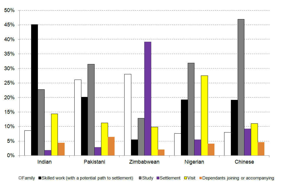 Source: Home Office, Migrant journey, table MJ 07. The chart displays the most common immigration routes.