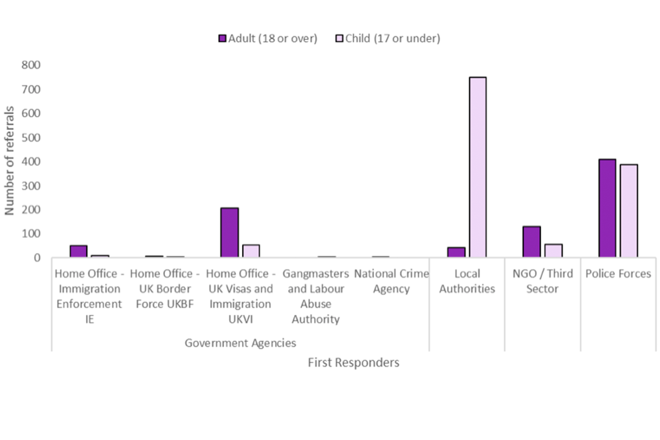 It is important to note that the statistics presented in this publication relate to the number of potential victims of modern slavery that have been referred to the NRM or via the DtN process.